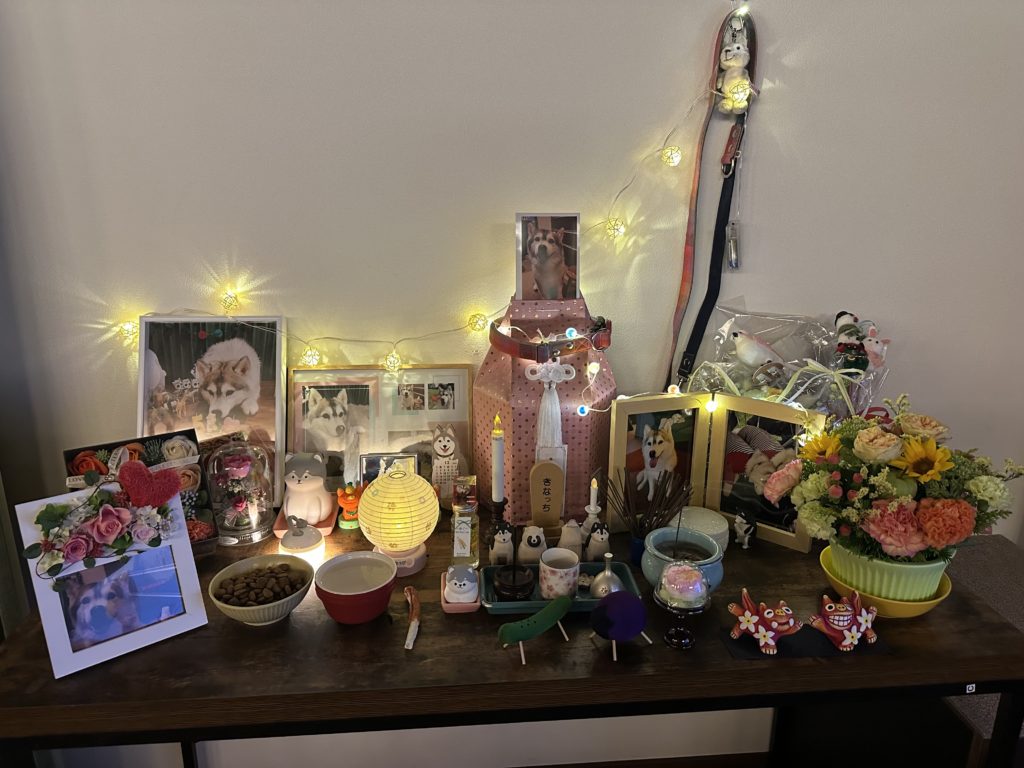 お盆ですので奥さんがきなの仏壇も綺麗にして少し不用な物は片付けました🧹新しい綺麗な花🌼💐も買ってきました😊