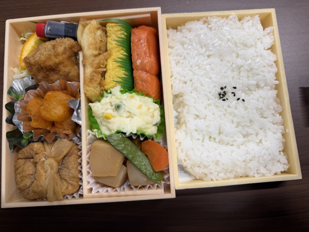 今日はNGP北海道支部例会💼はちわかさんの高級お弁当🍱2,300円位になってるみたい😱夜は忘年会🍻🥂天気悪いしタクシーが居ない😭