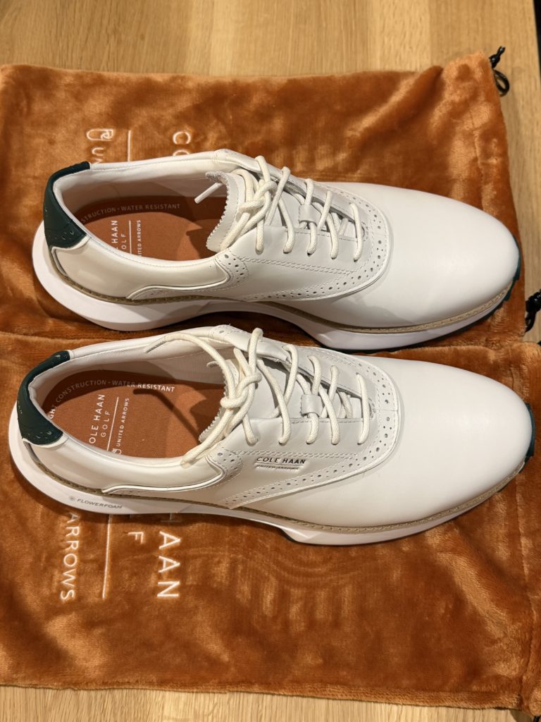 - 今シーズンはゴルフシューズをまずは白色買いました👟黒色も欲しいと思ってます🤔UNITED ARROWSとCOLE HAANのコラボレーションでアッパーは柔らかい革で履きやすくアウトソールはスパイクレスにして家から履いて行けるのが良いと🏌️♂️これで上手になればと😅