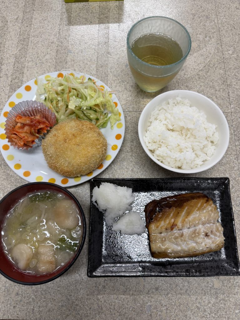 今日のお昼ご飯です🍚サバとコロッケとキムチと野菜とお味噌汁😋毎日ありがとうございます😊