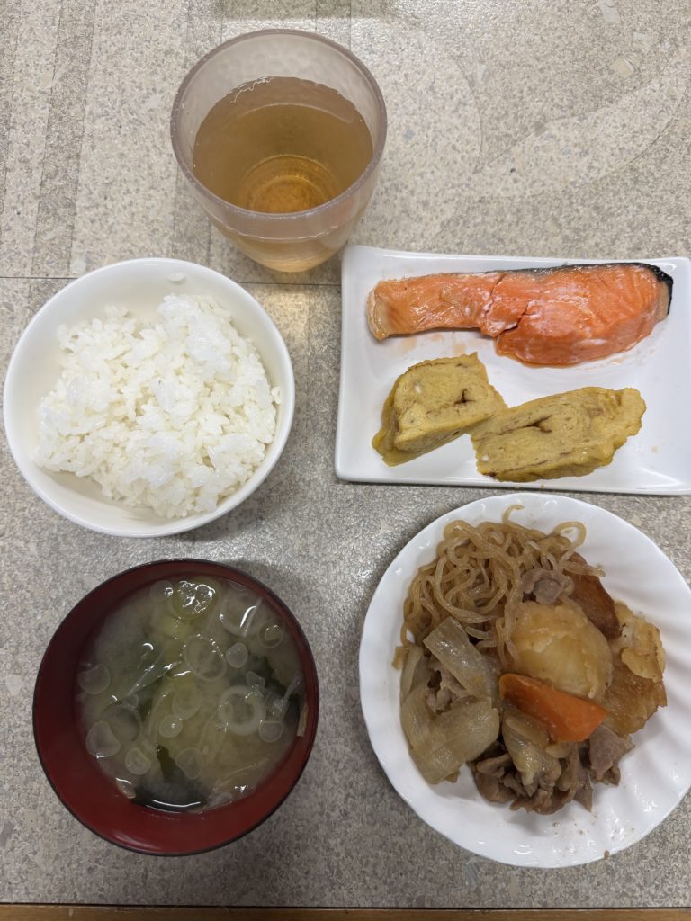 肉じゃがと魚とたまご焼きとお味噌汁でした😋さかな🐟は大好きなのでお昼に食べれて良かったです😊